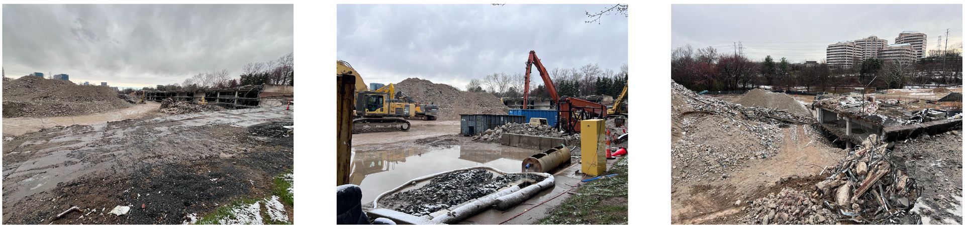 The focus is now on the demolition of the garage structure. The demolition process will be similar in nature to the office building. This equipment may sound or feel different from the equipment used on the main office building demolition. Given that the parking structure is partially underground, the demolition may sound different. The garage demolition work is expected to continue through May 2026. Celtic Demolition will continue to use water sprayers during the garage demolition to reduce dust on site.